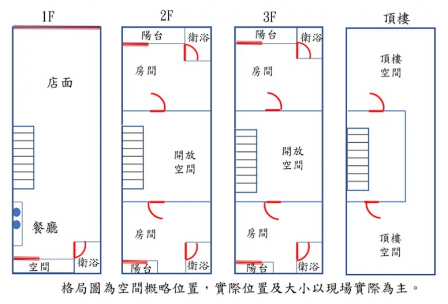2.一樓店面、二三樓4房皆套房且有陽台對外,格局方正,採光絕佳
